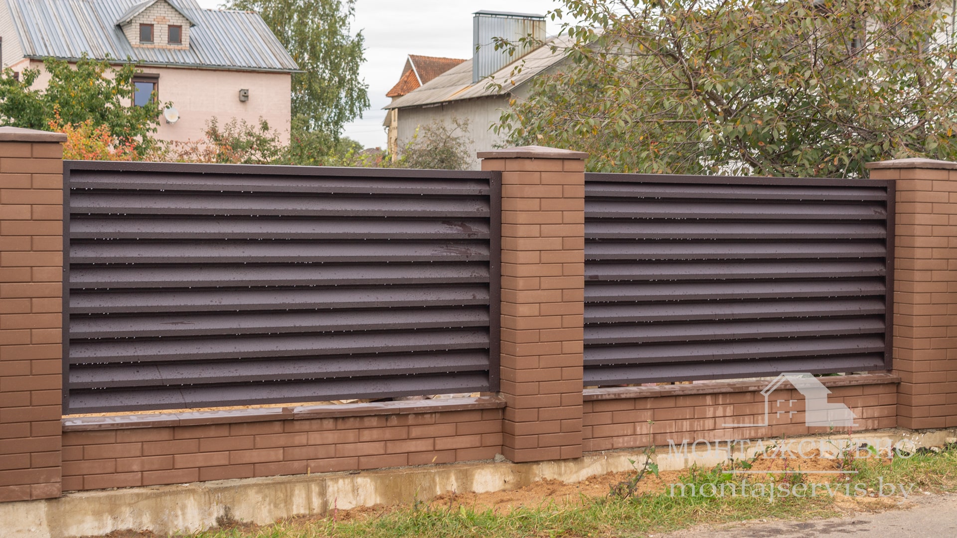 • Монтаж ограждения "Жалюзи RAL 8019MAT" + калитка + ворота откатные