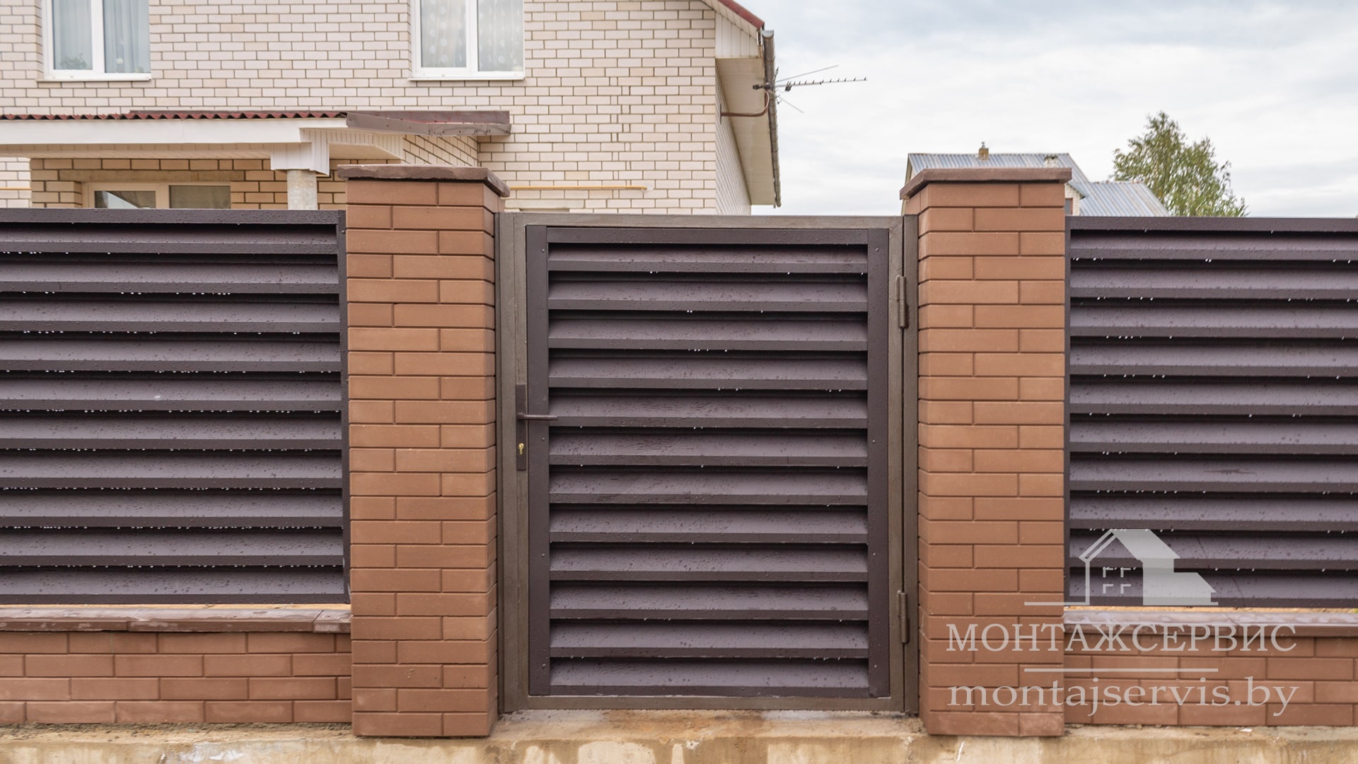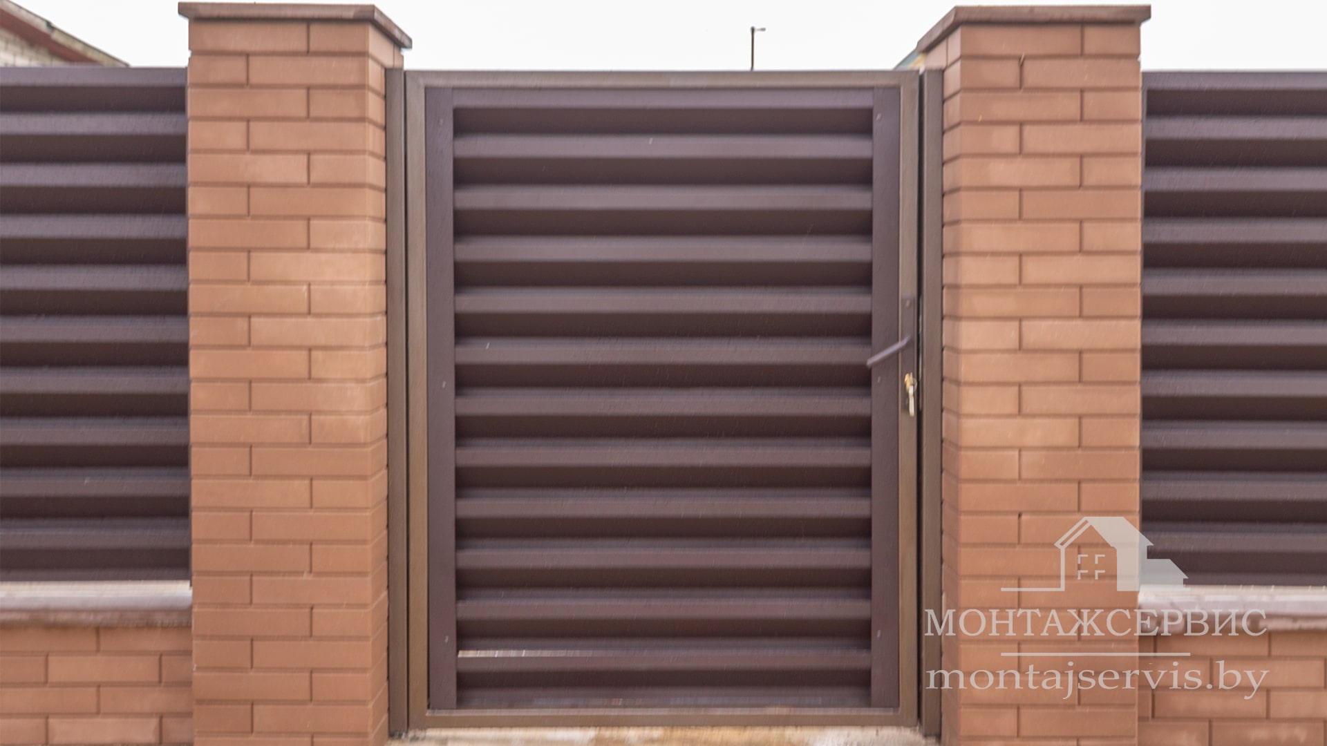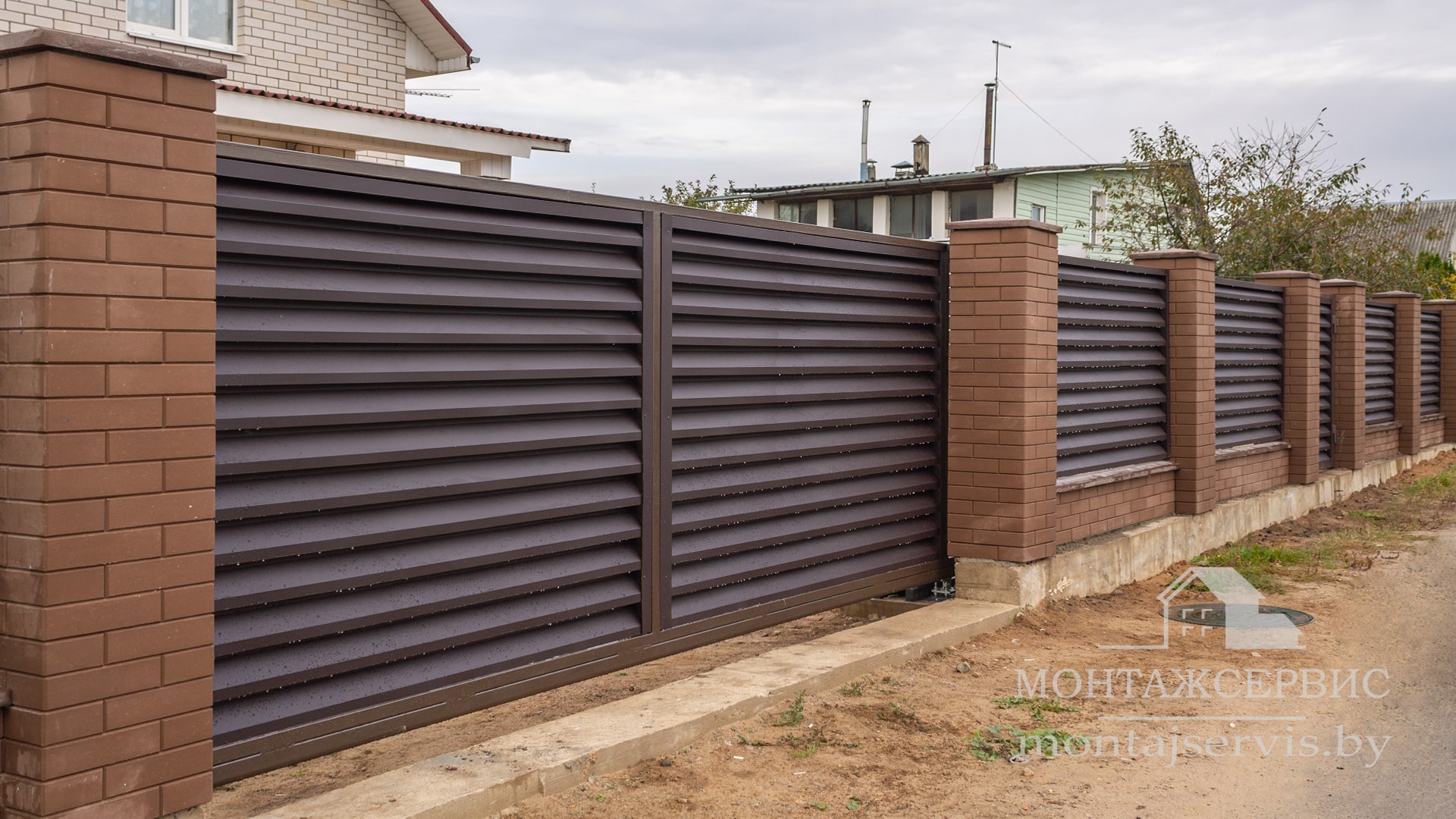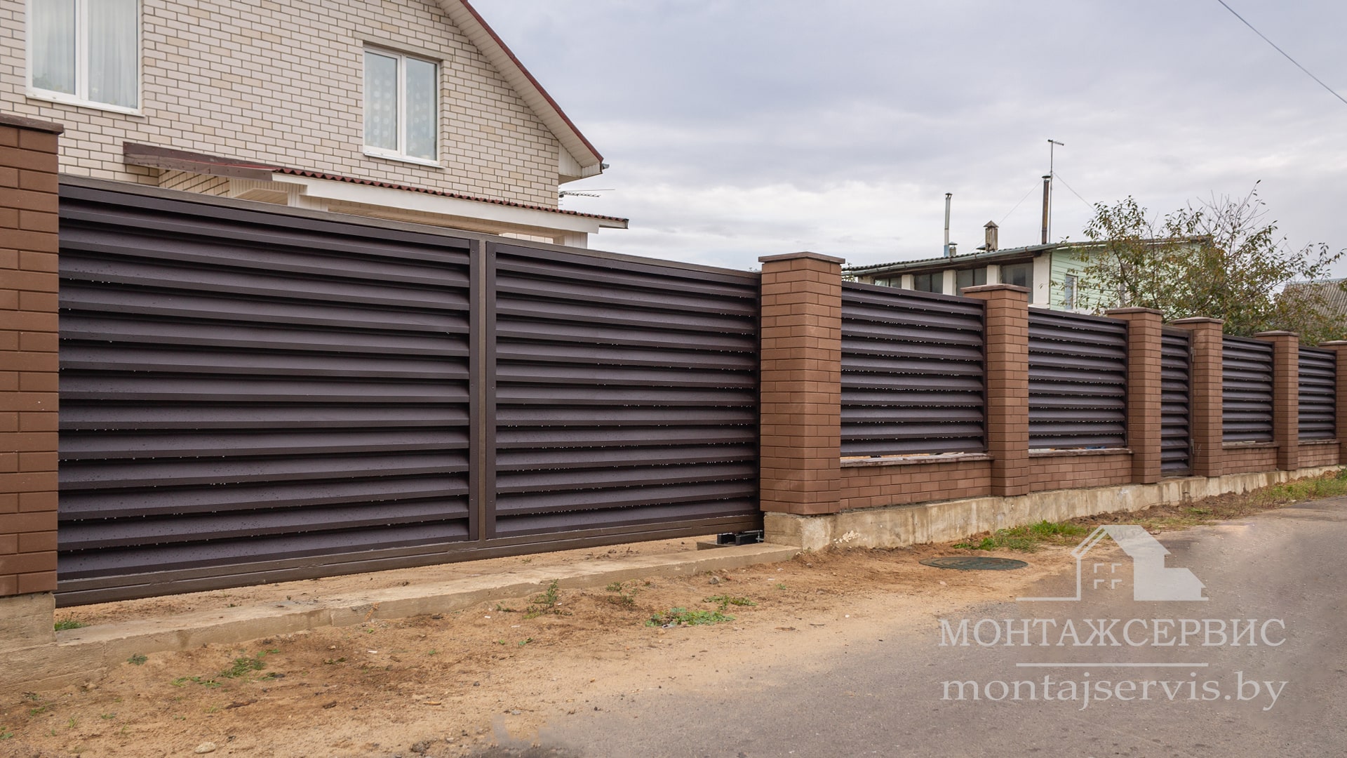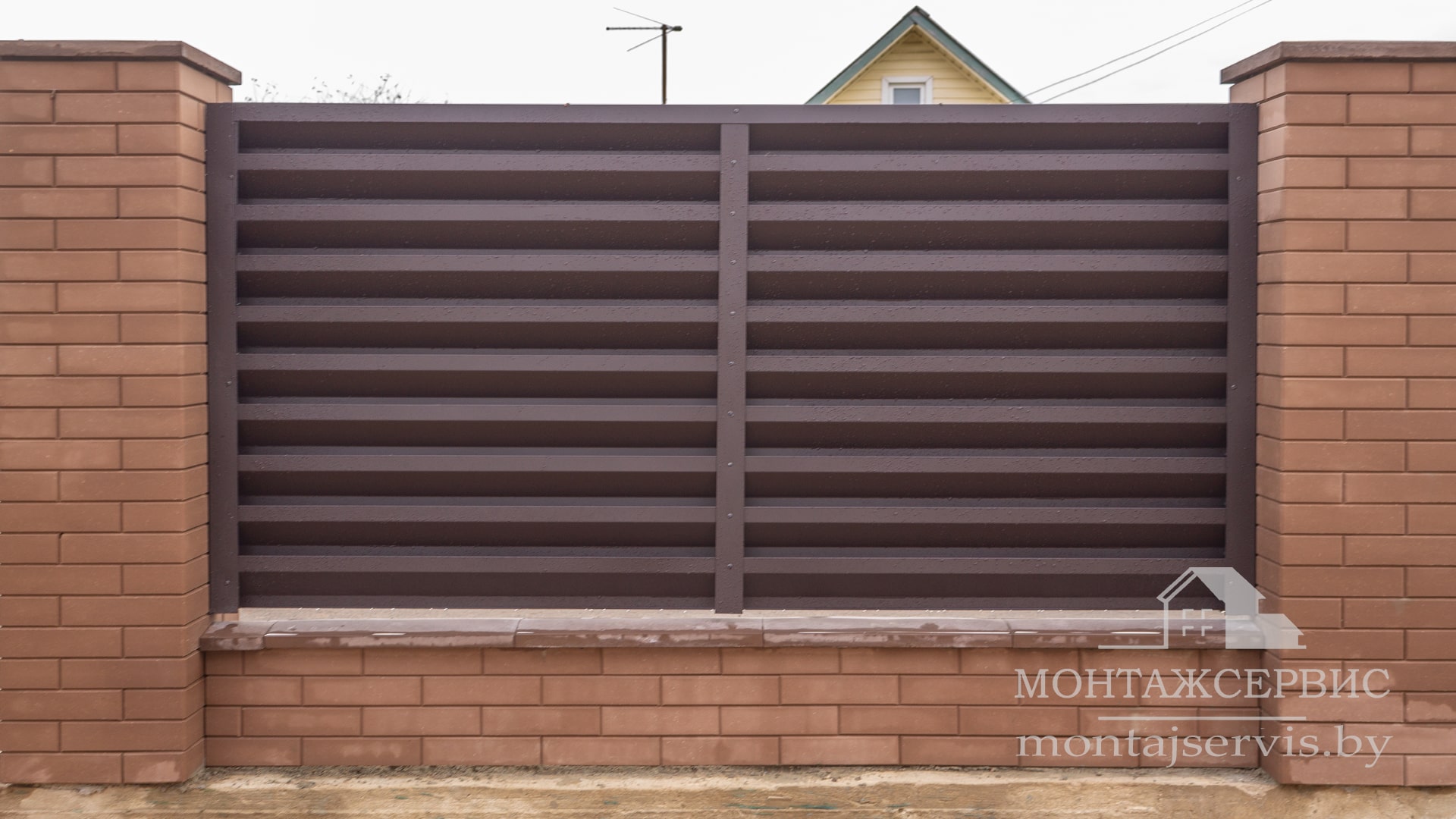 Монтаж ограждения "Жалюзи RAL 8019MAT" + калитка + ворота откатные