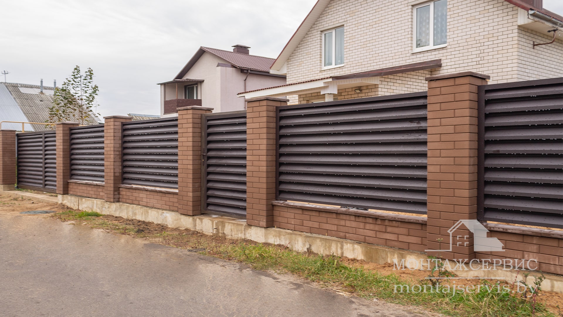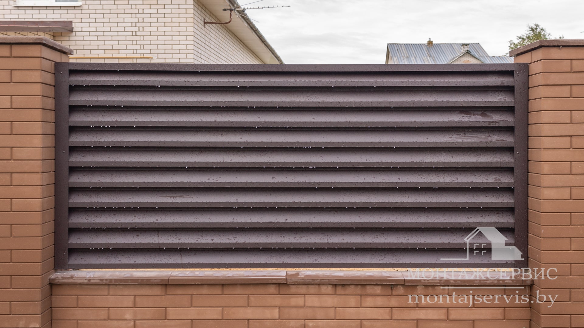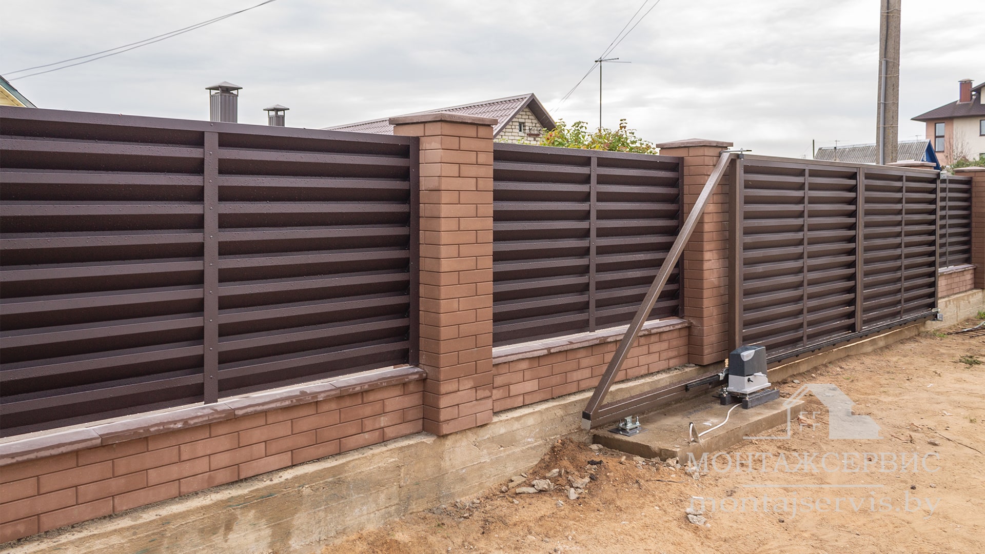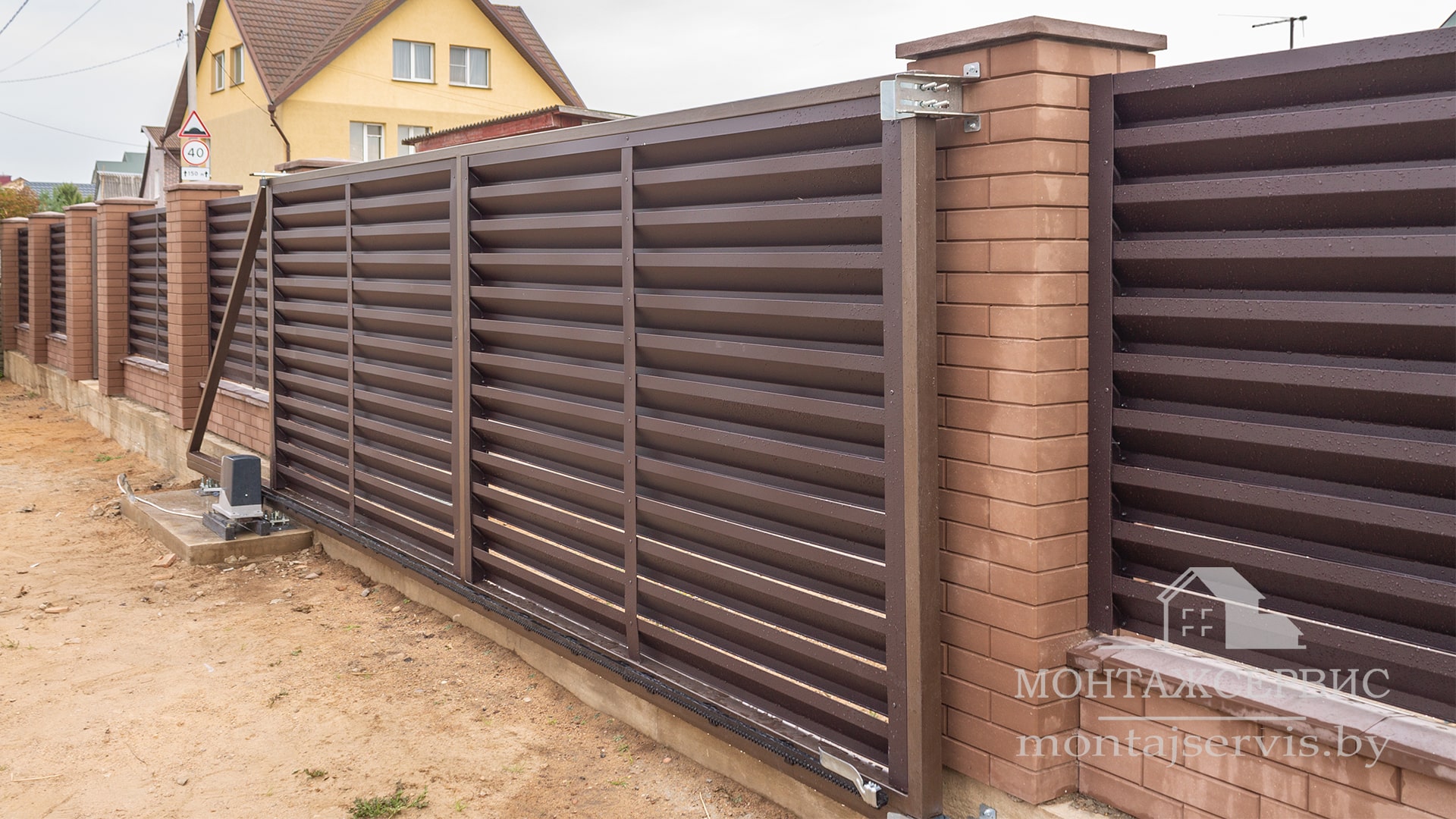 Монтаж ограждения "Жалюзи RAL 8019MAT" + калитка + ворота откатные