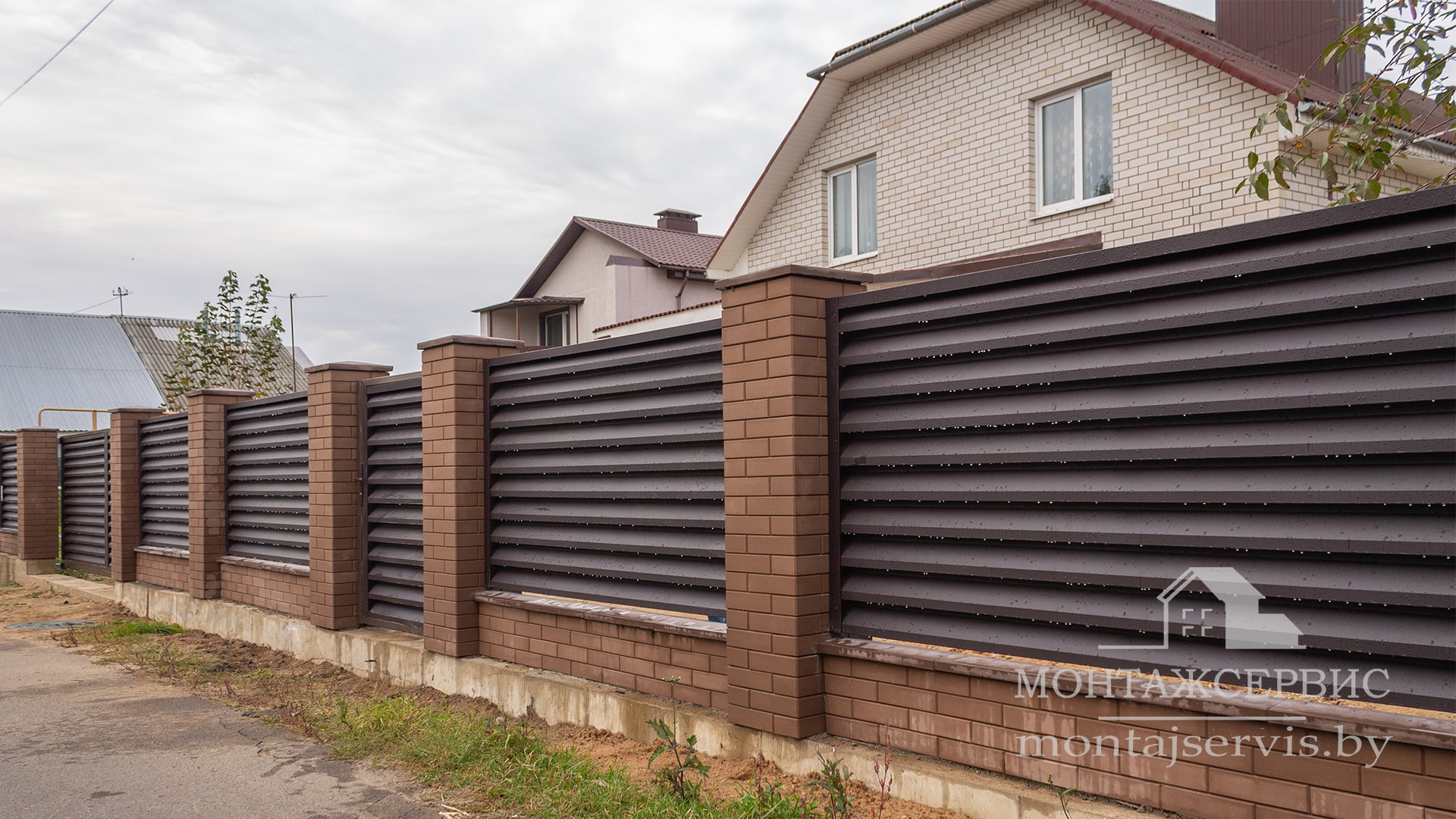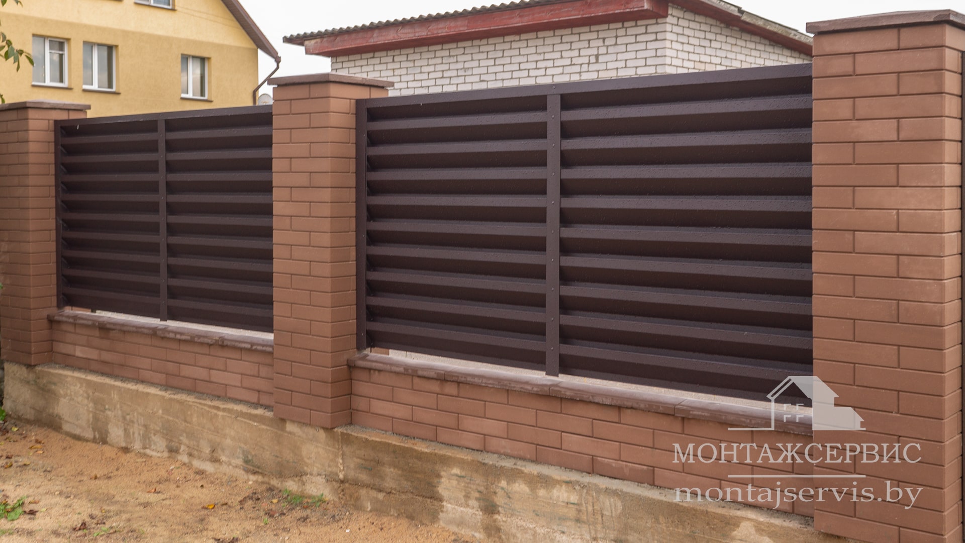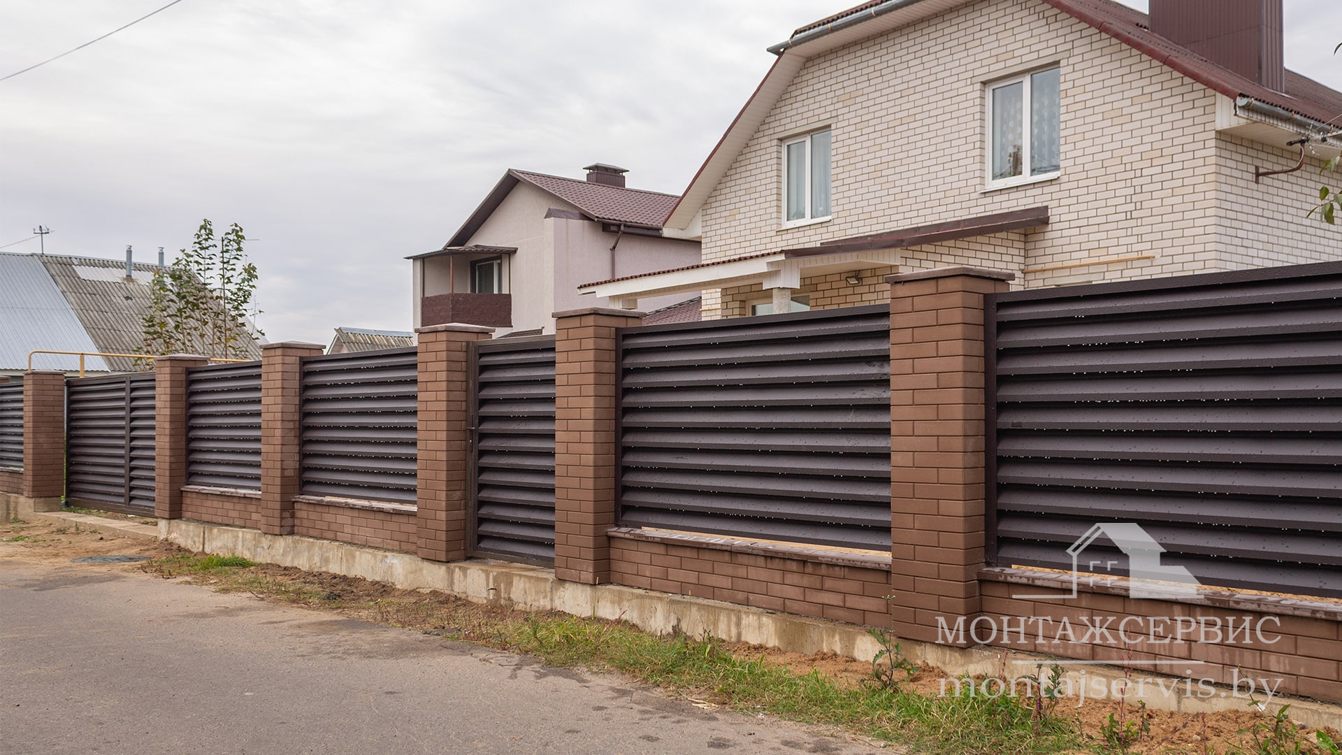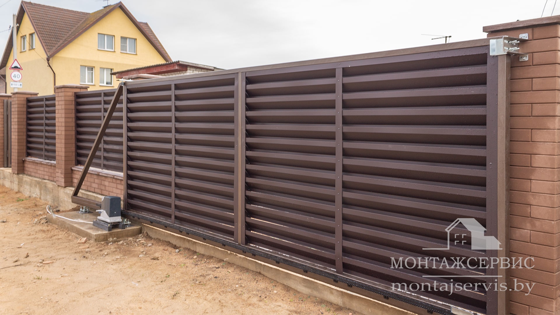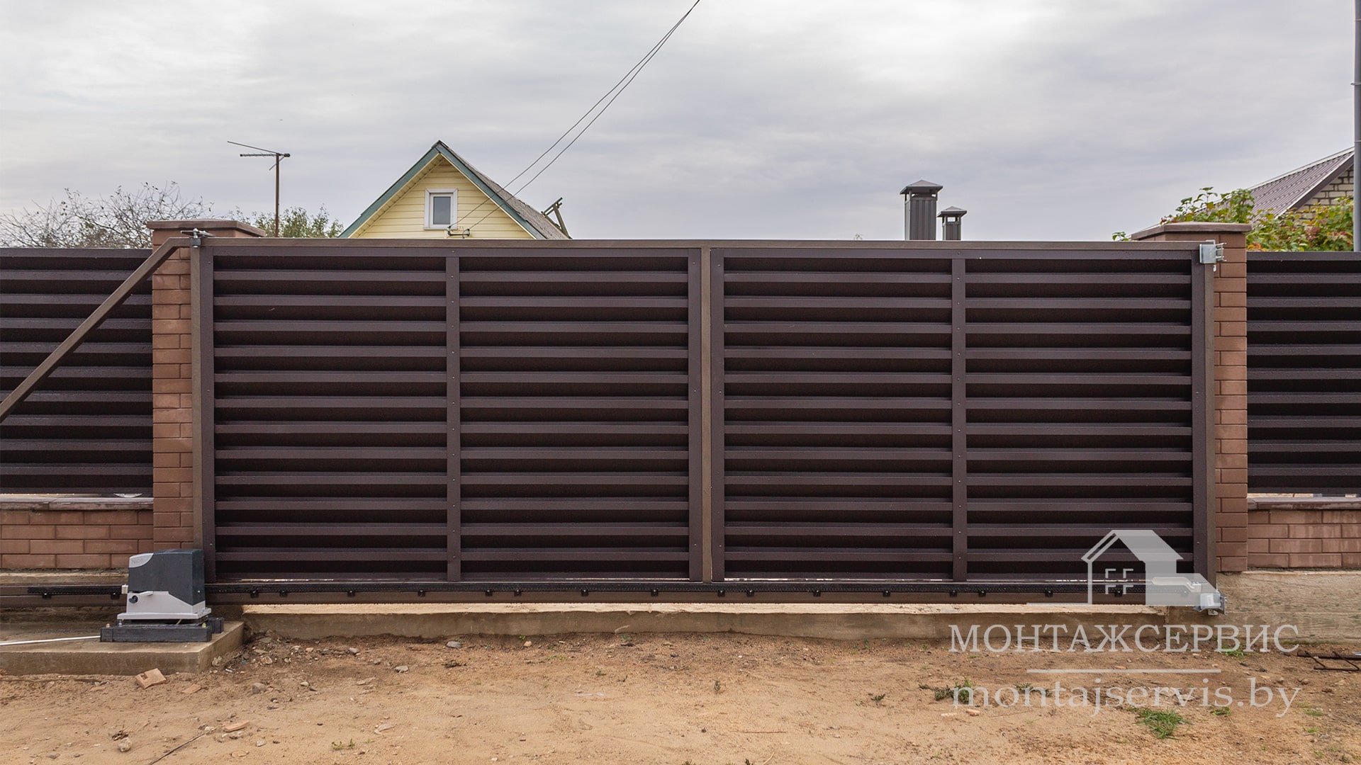 Монтаж ограждения "Жалюзи RAL 8019MAT" + калитка + ворота откатные