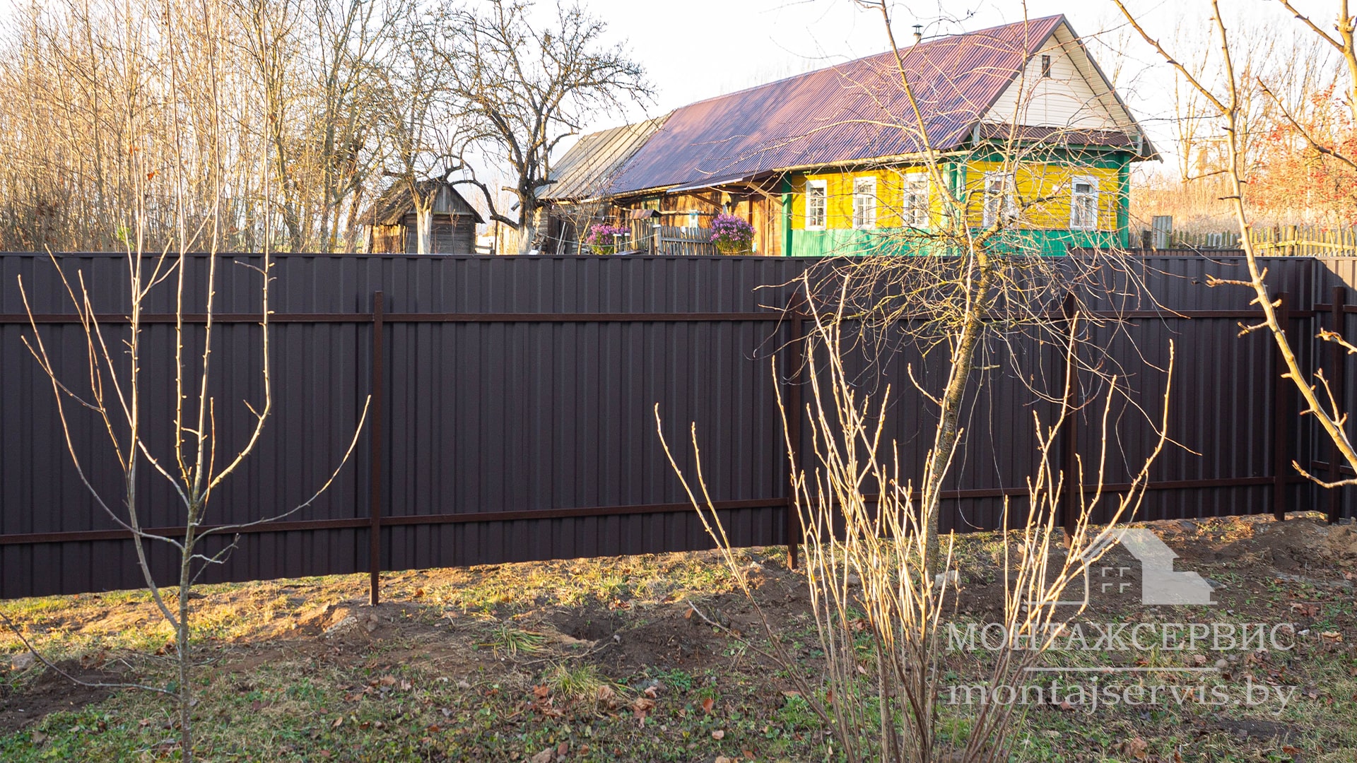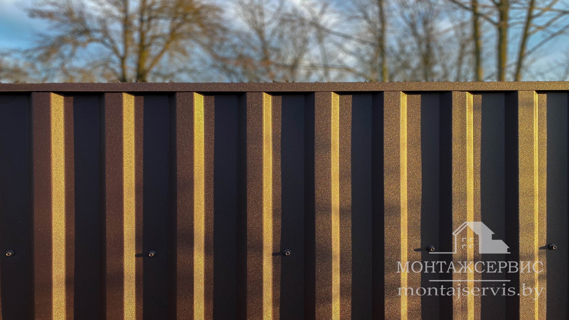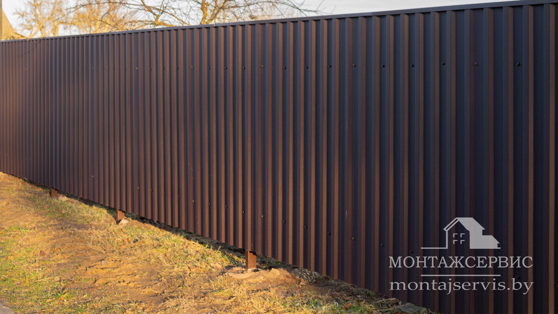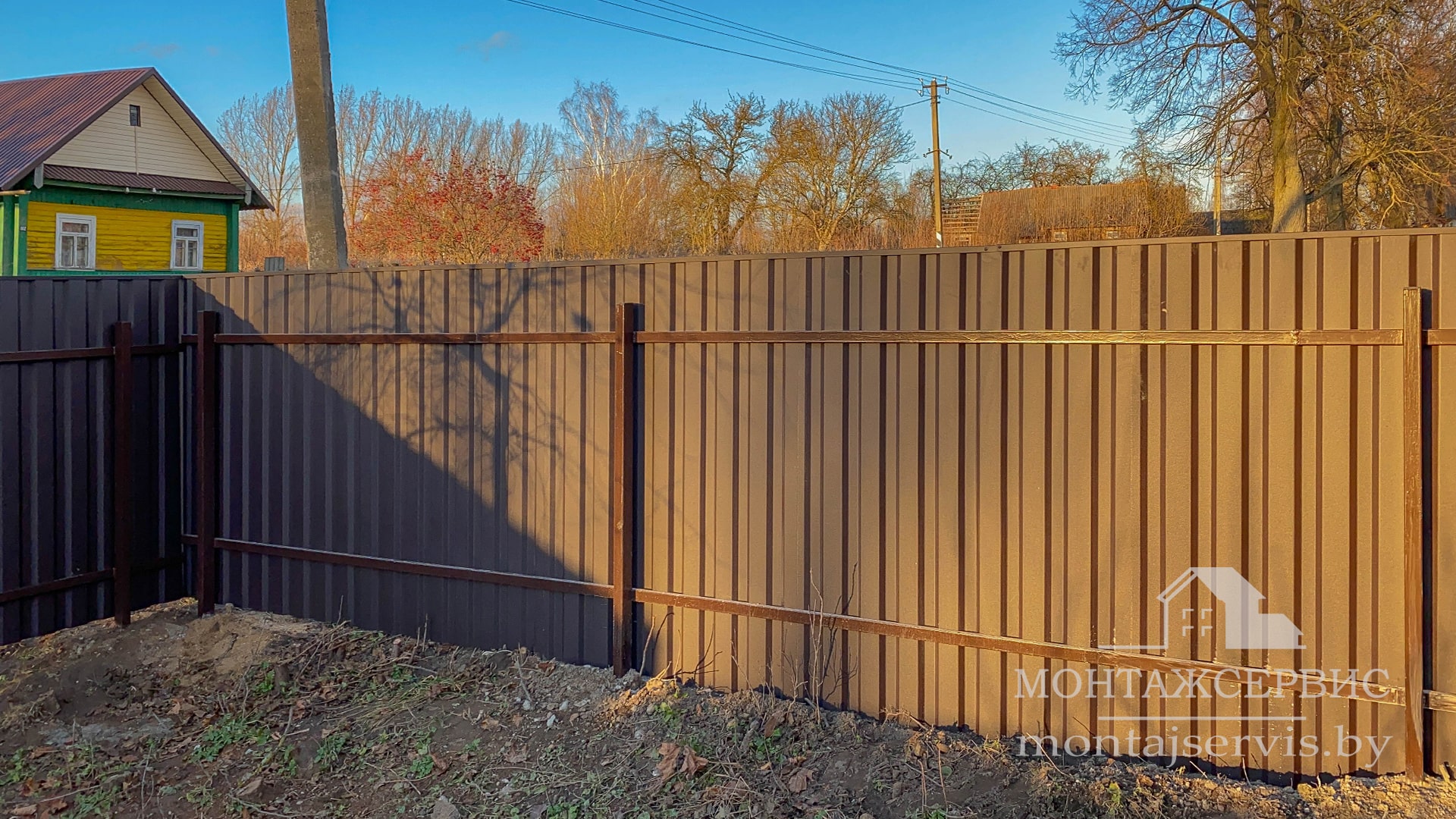 Монтаж забора из профнастила МП-20 RAL 8019 MAT + ворота распашные с калитка