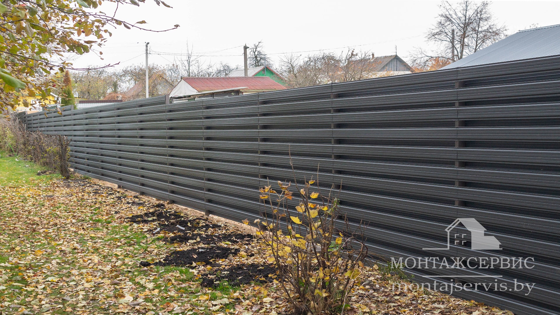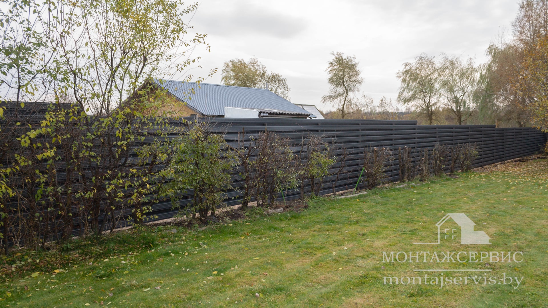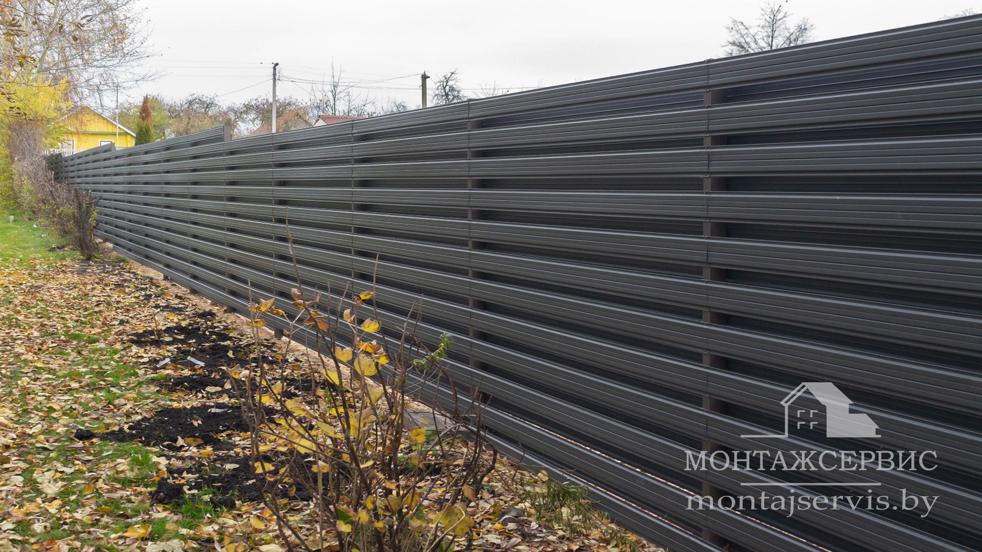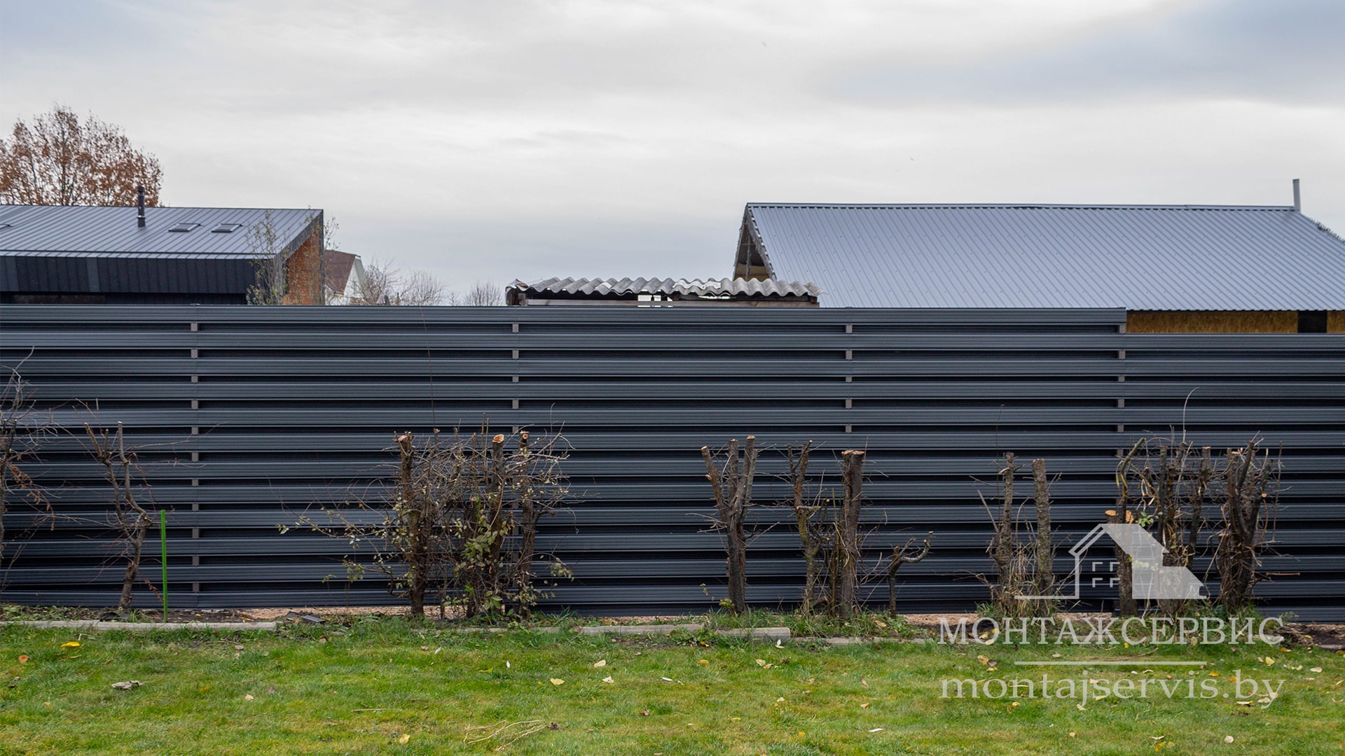 • Монтаж забора РАНЧО из металлического штакетника "КЛАССИК 114 мм" RAl 7024 МАТ"