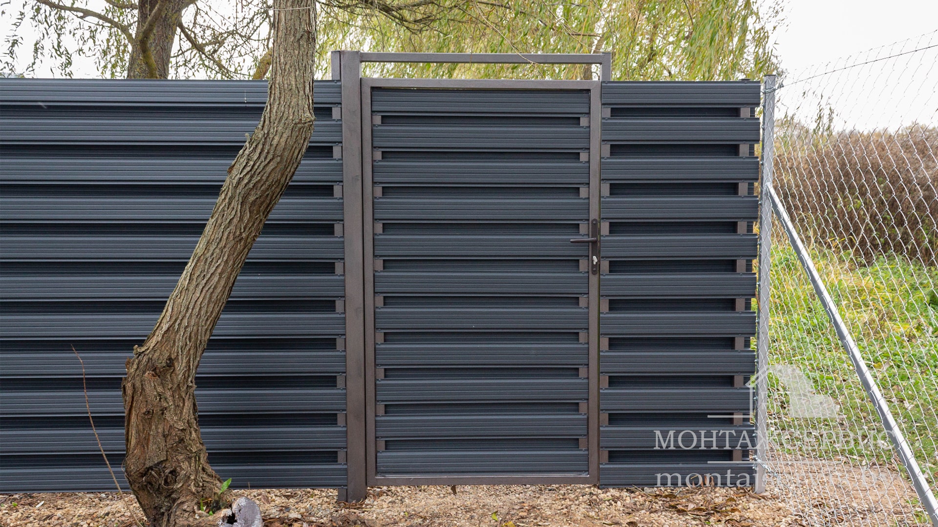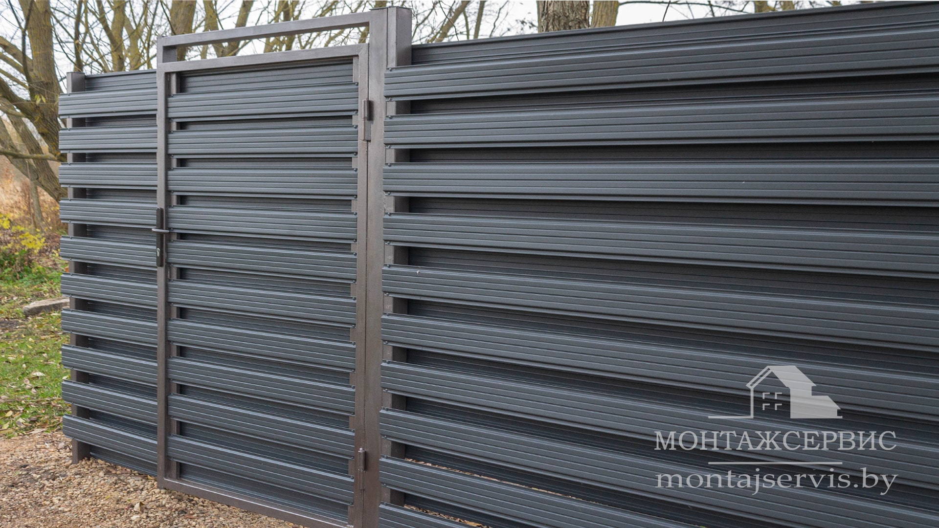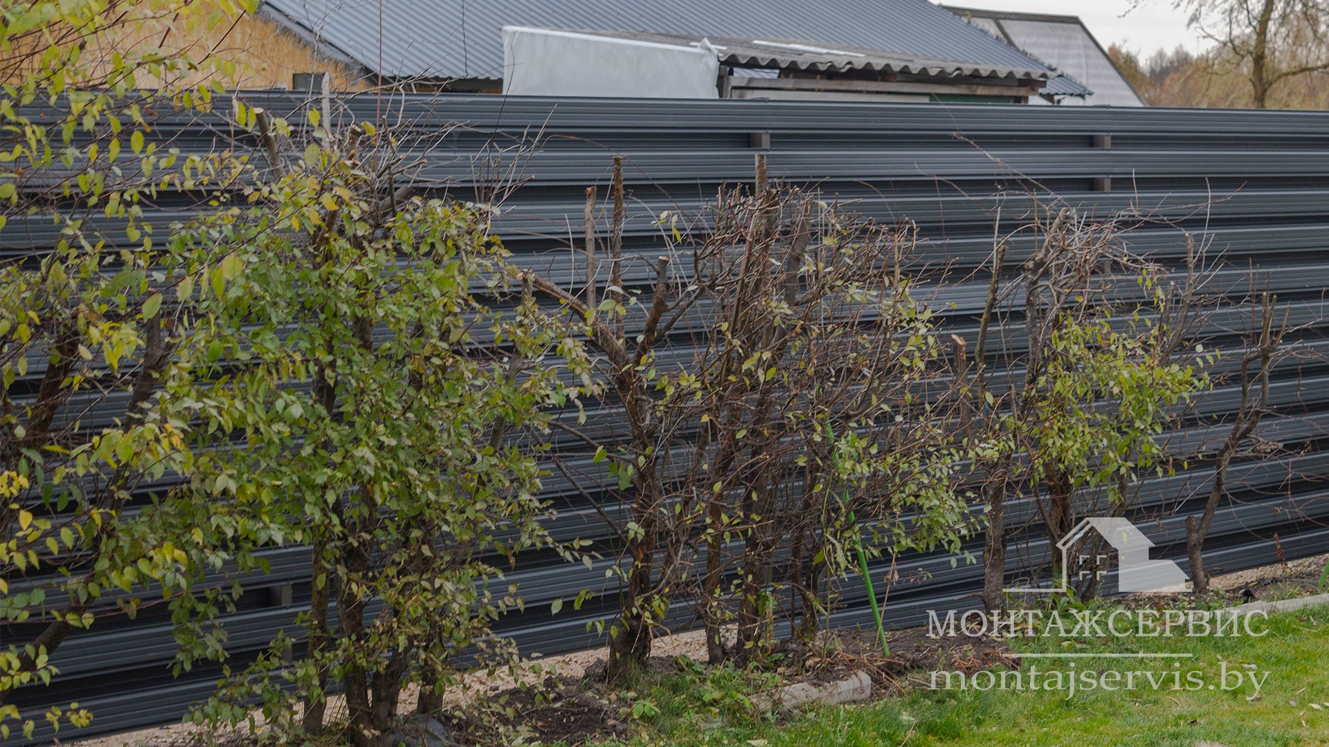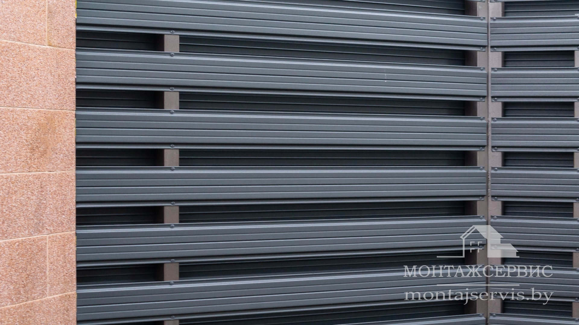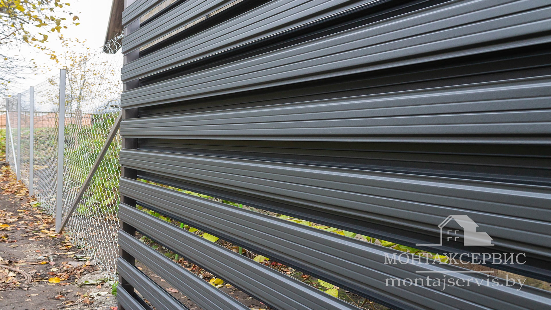 • Монтаж забора РАНЧО из металлического штакетника "КЛАССИК 114 мм" RAl 7024 МАТ"