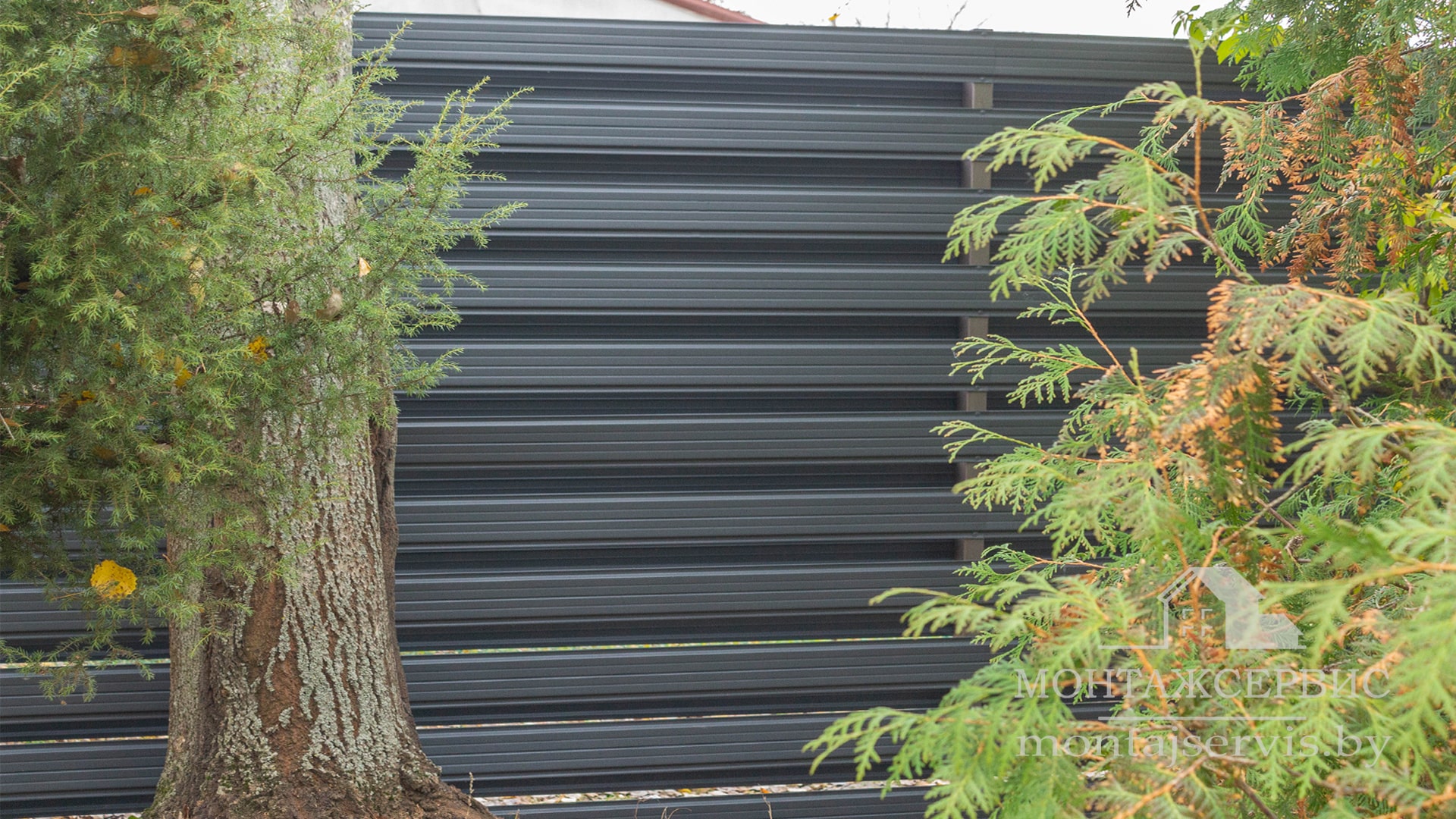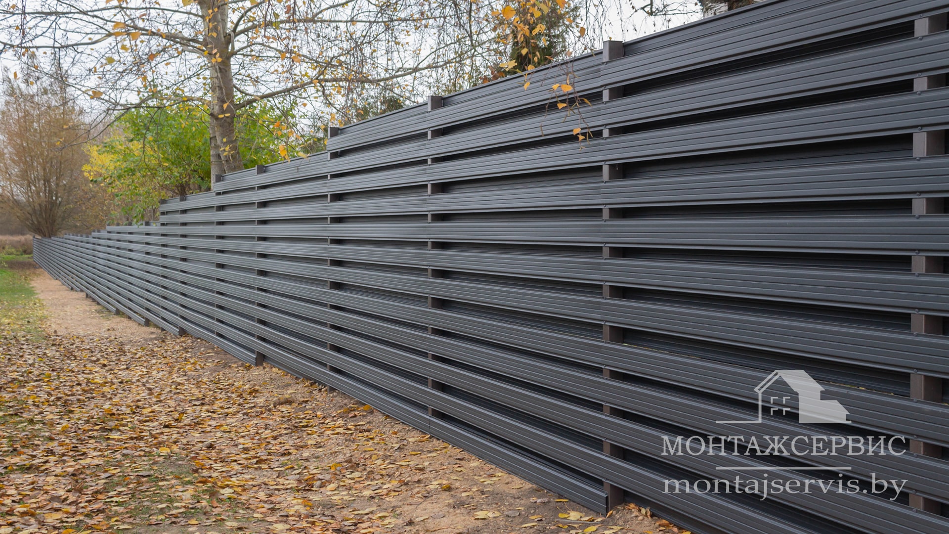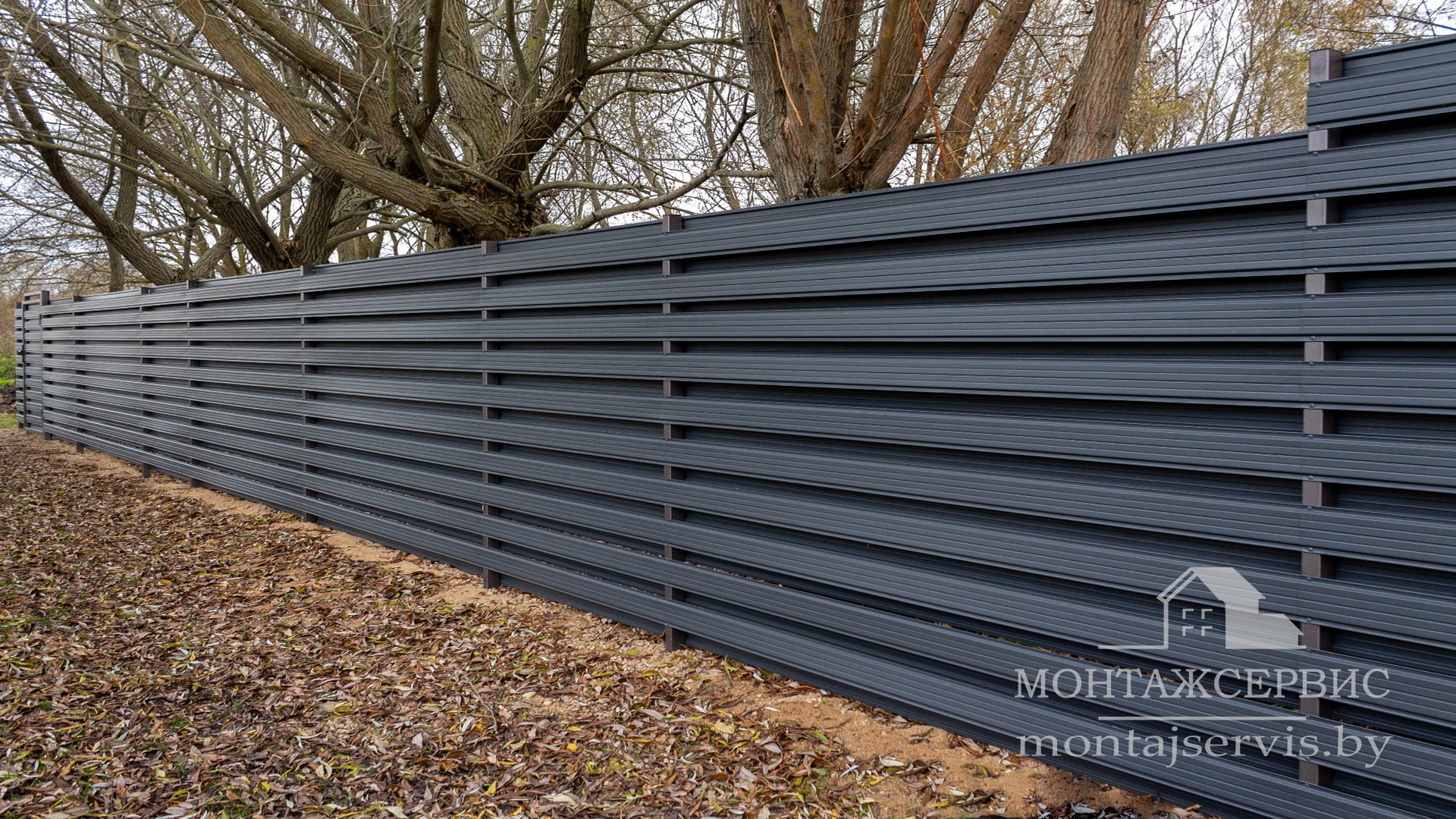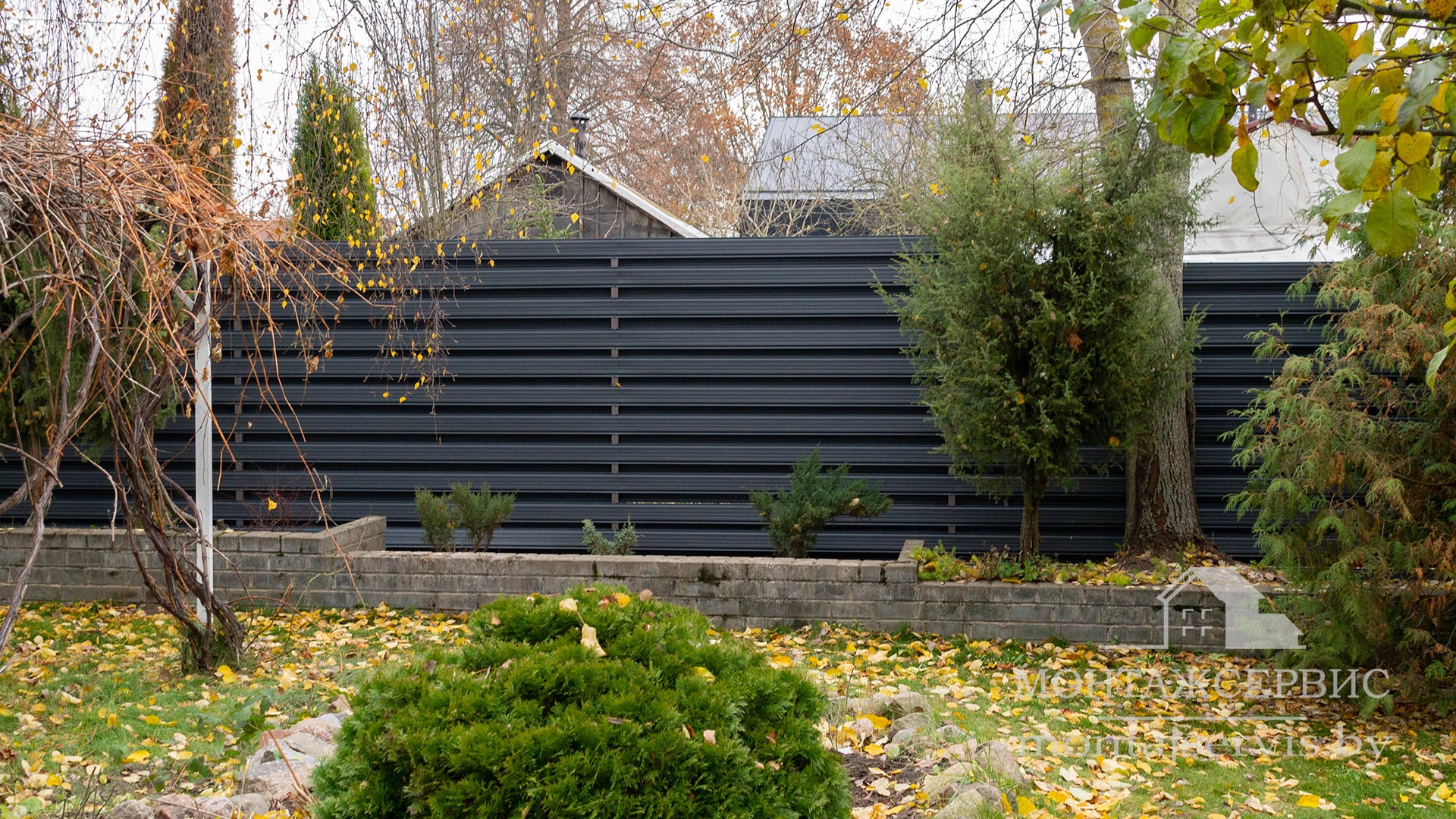 Монтаж забора РАНЧО из металлического штакетника "КЛАССИК 114 мм" RAl 7024 МАТ"
