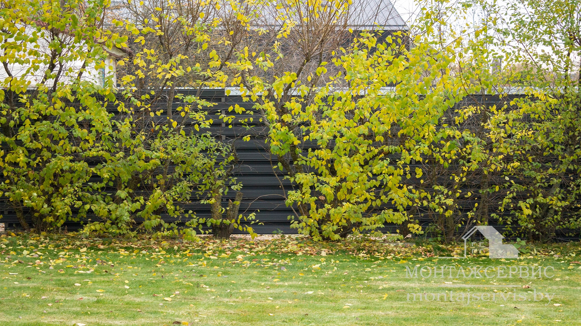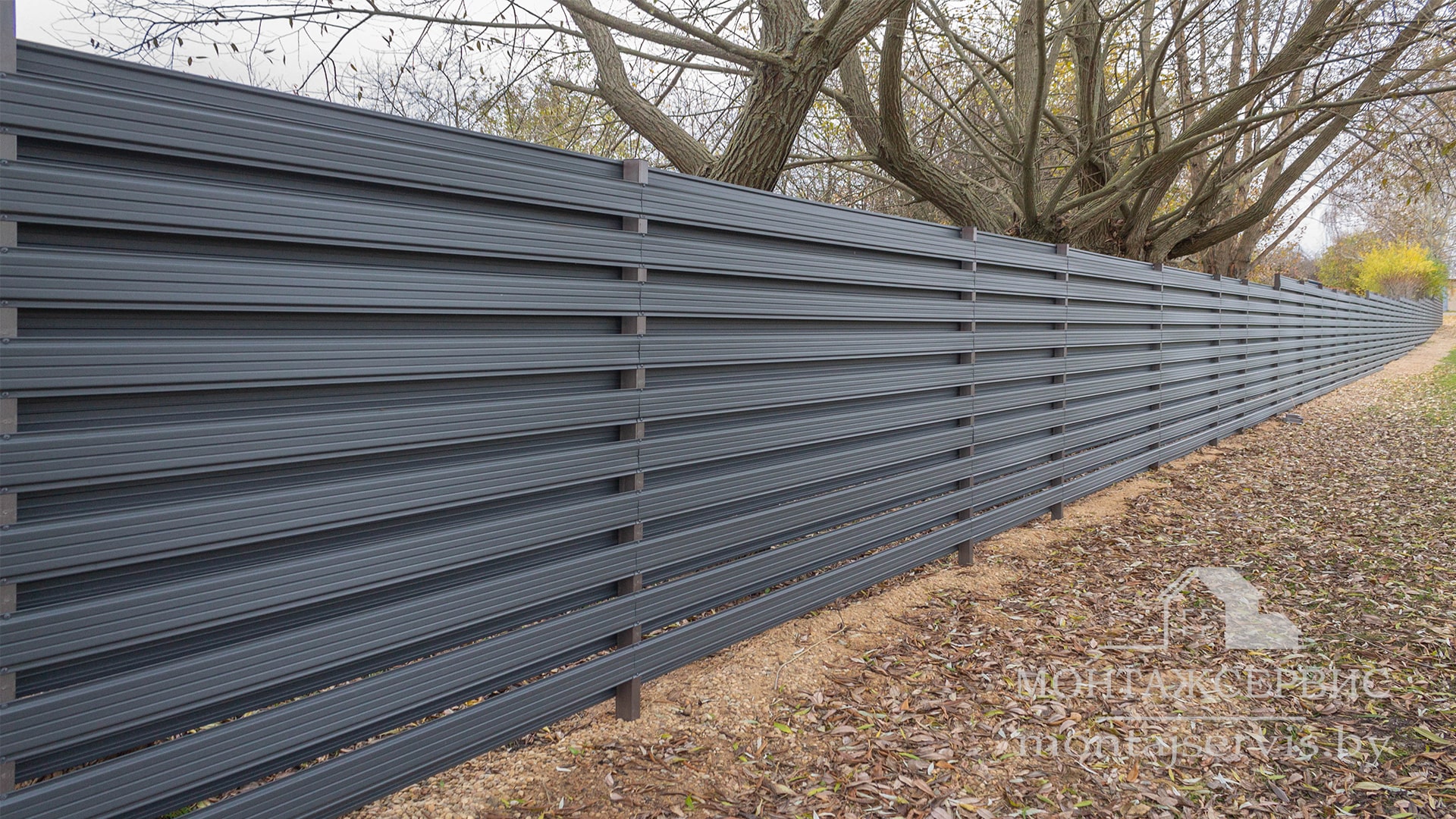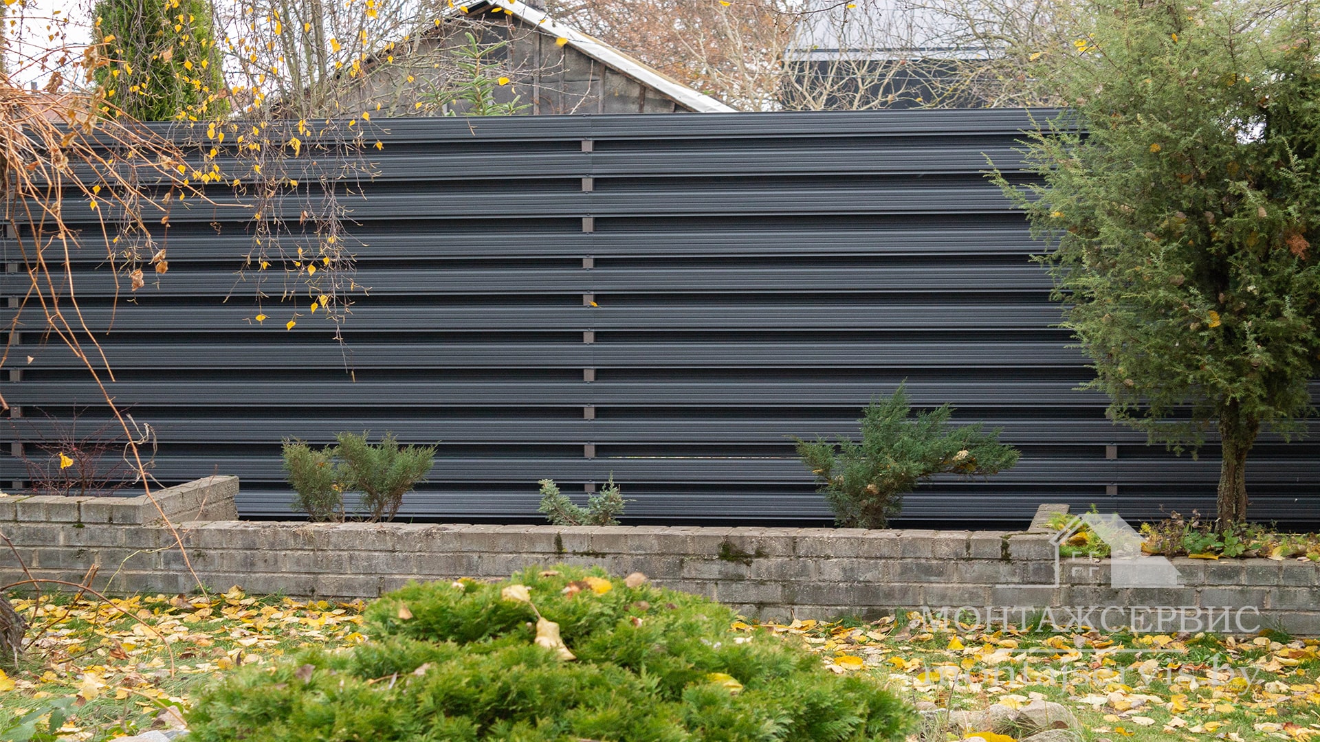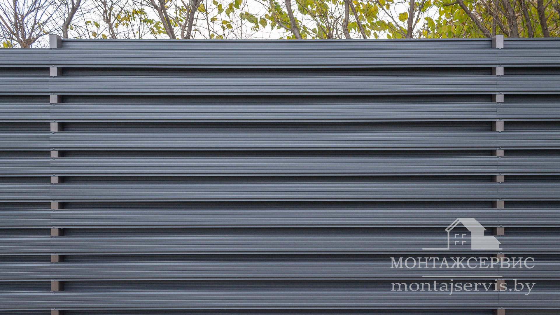 Монтаж забора РАНЧО из металлического штакетника "КЛАССИК 114 мм" RAl 7024 МАТ"