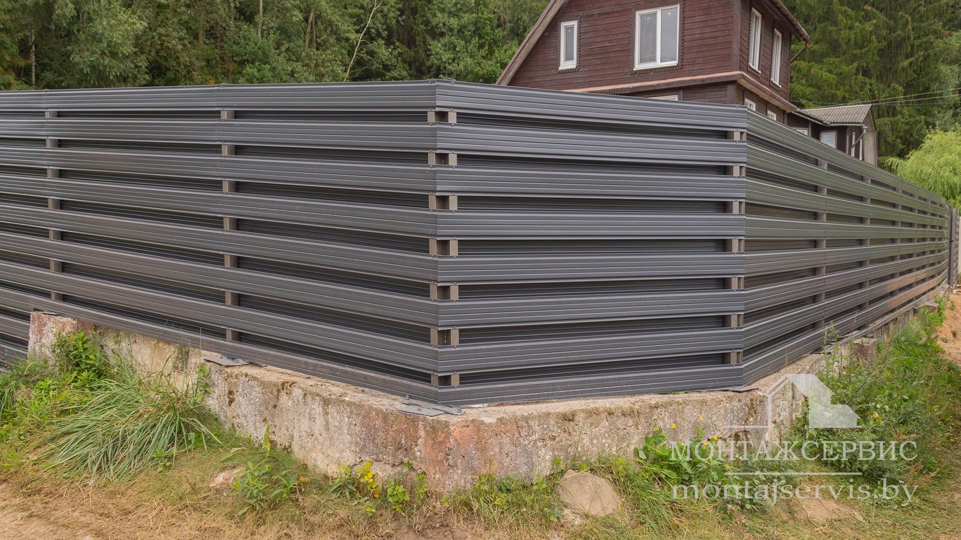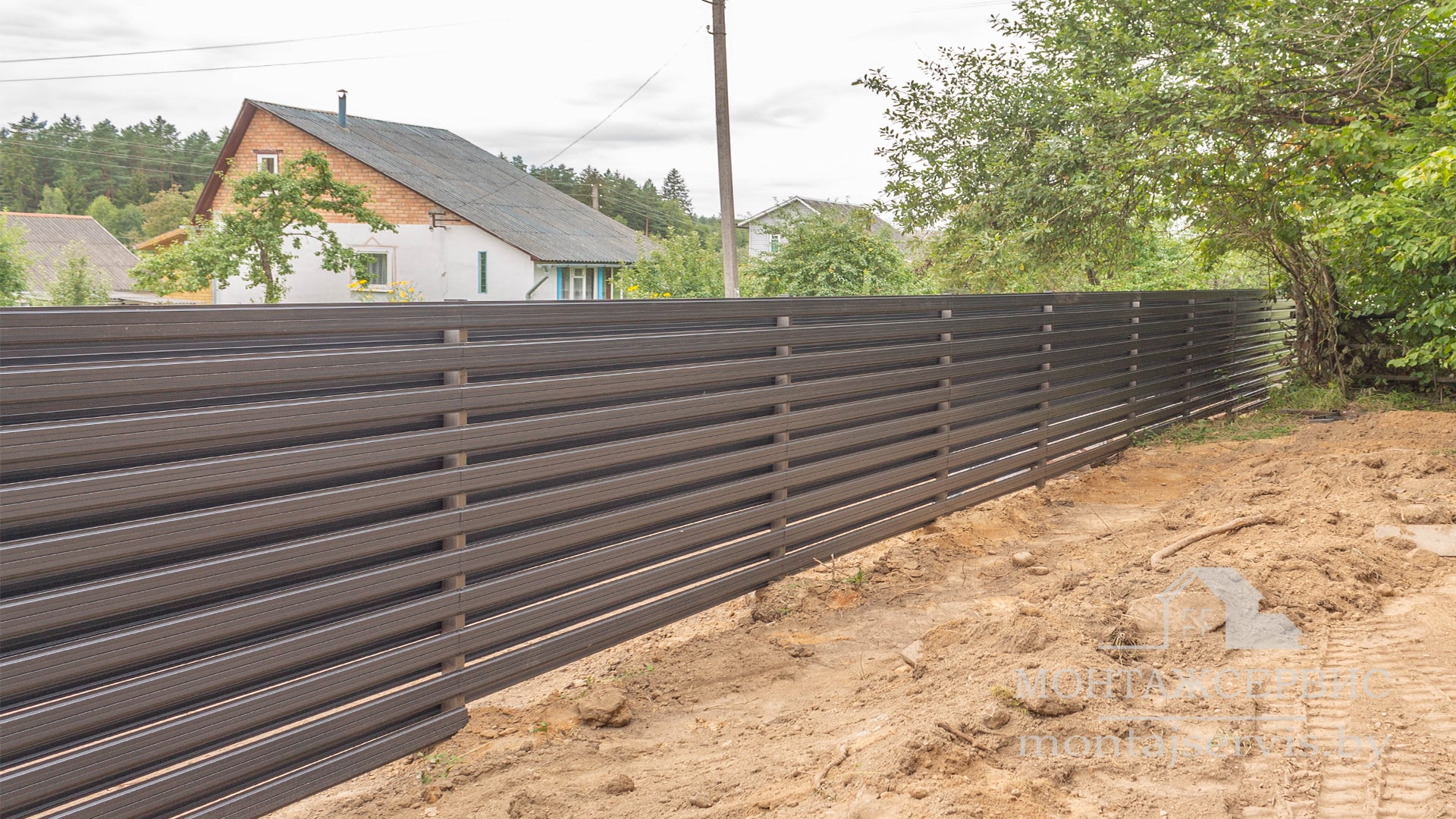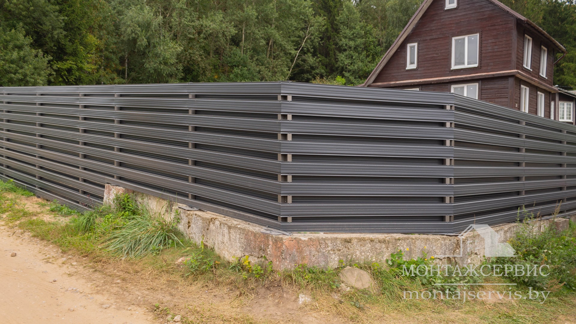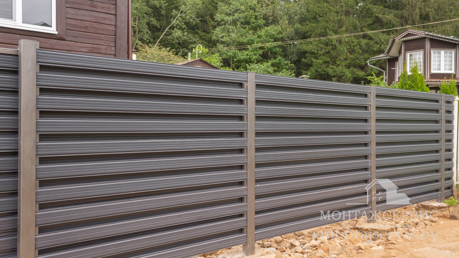 Монтаж забора РАНЧО из металлического штакетника "КЛАССИК" RAl 7024 + ворота откатные + калитка