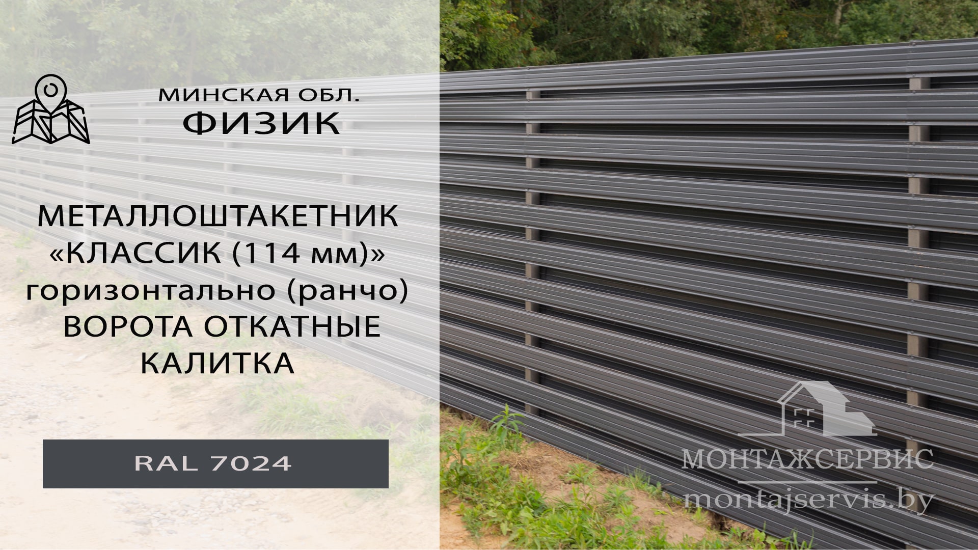 • Монтаж забора РАНЧО из металлического штакетника "КЛАССИК" RAl 7024 + ворота откатные + калитка